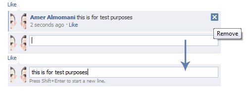 When you comment on your friend’s status, photos or link, and want to edit your comment, simply press the ‘X’ in the top right corner to edit it. Your comment instantly turns into a text box where you can alter what you’ve written, then just press Enter again to save it.