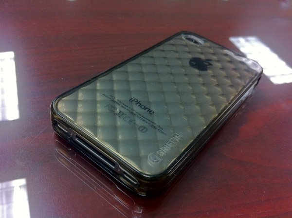 The phone had a Griffin Motif case, and no other protection.