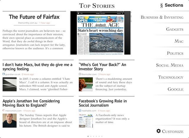 Many iPad owners who have used the free Flipboard app for any length of time are familiar with its promise and its shortcomings. Sure, it looks cool — enter your Twitter name and Facebook account, and it turns those feeds into a magazine, complete with gorgeous photos, headlines and virtually flippable pages.