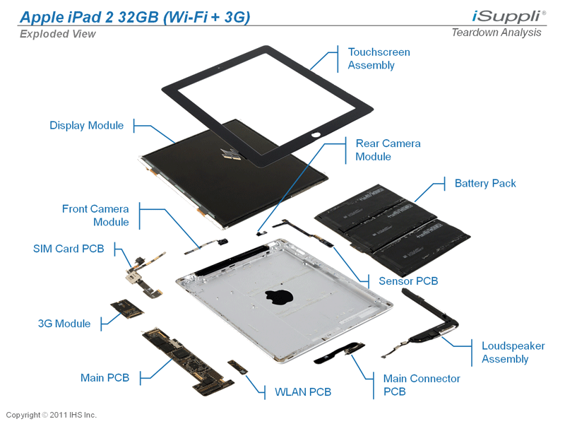 Last week, iFixit conducted a more traditional teardown of the iPad 2 itself. The disassembly of Apple’s latest touchscreen tablet revealed that the new device has a slightly bigger battery than its first-generation counterpart, as well as double the RAM with 512MB.