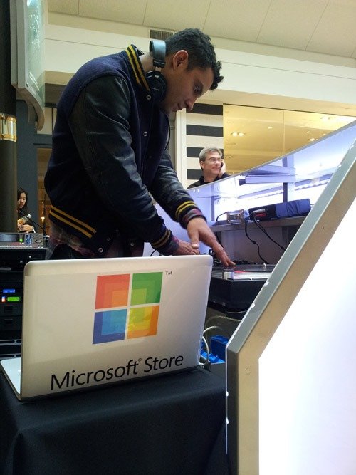Another example for such thing, during a Microsoft Store opening in McLean, Virginia. As noted by CultofMac, the DJ brought to entertain the crowd was using a MacBook Pro cover by Microsoft sticker. Check out the photo below